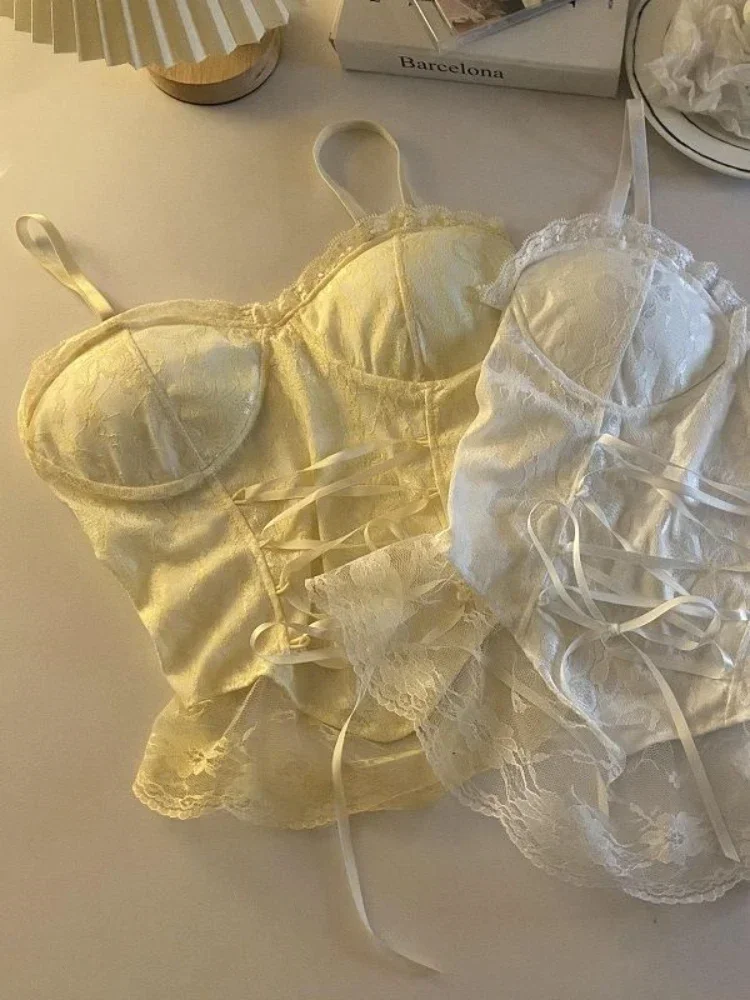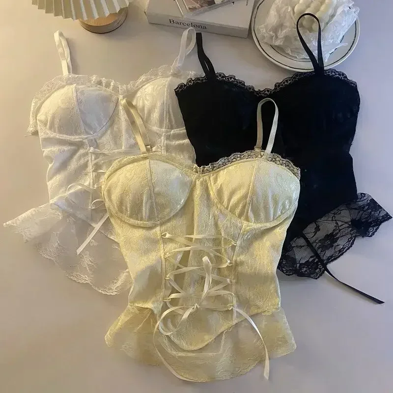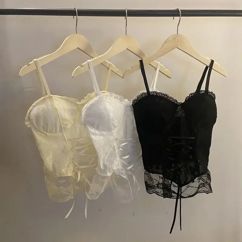 Clothes Blouses Sexy Crop Tops Women Corset Lace Bandage T-shirt Camisole Woman Sling Tank Top Fashion Sleeveless Waistcoat