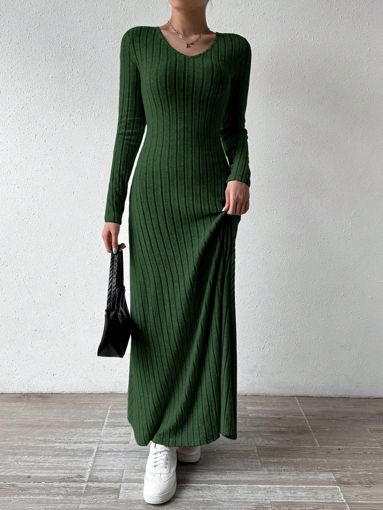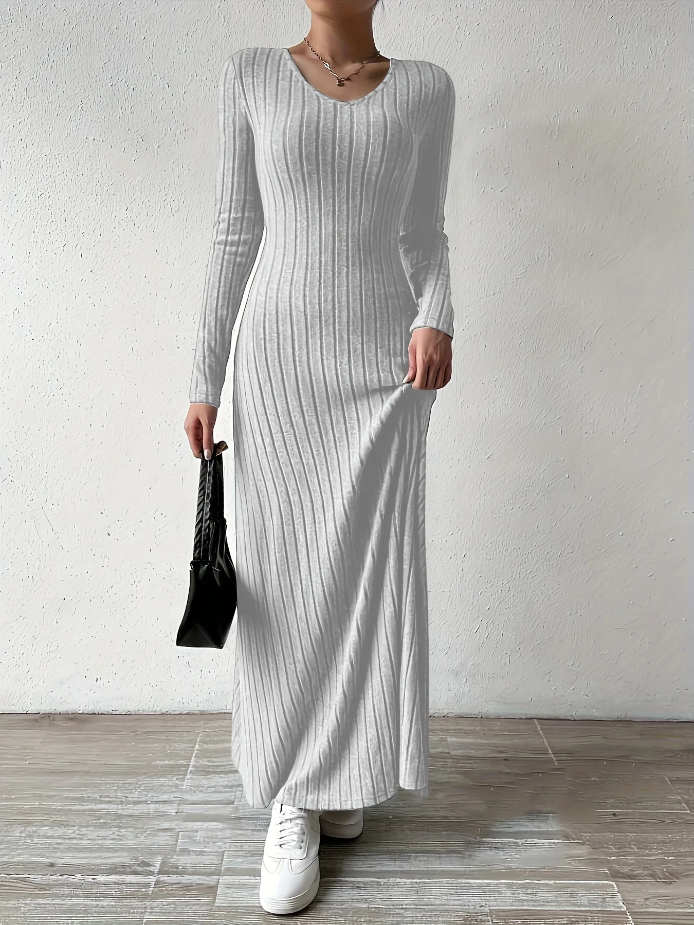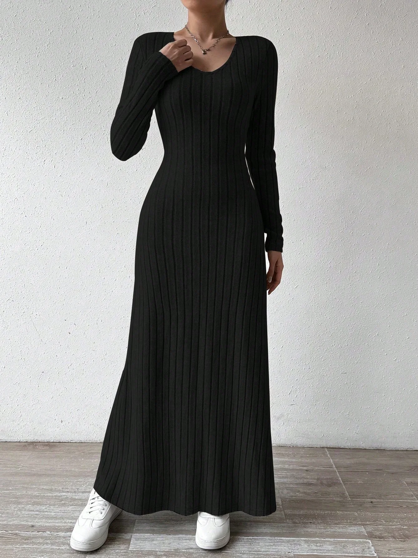 Womens Dresses Female Clothes New Long Sleeve V-neck Knitted Long Dress For Women Elegant Party Long Dresses Gothic Clothes 2025