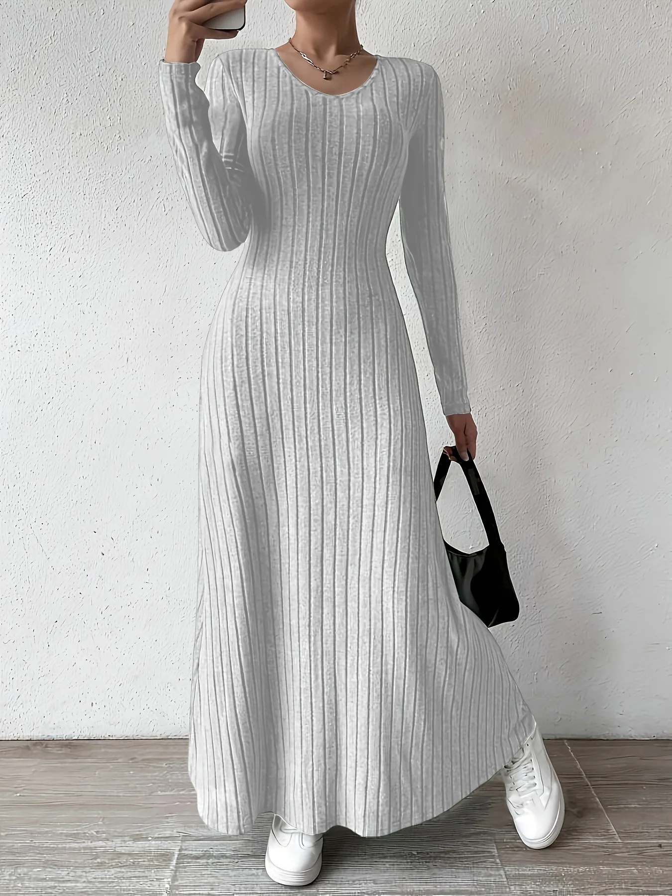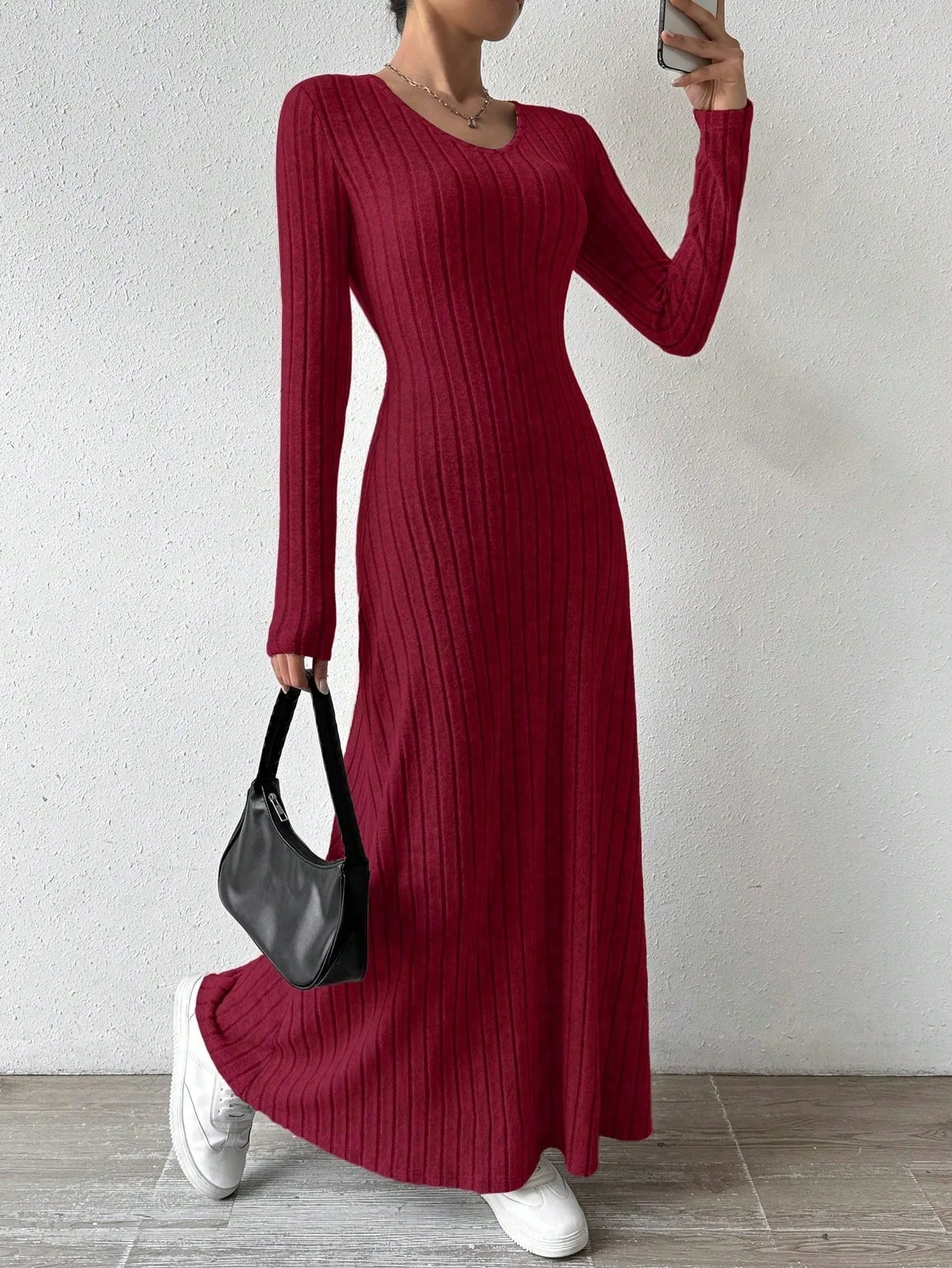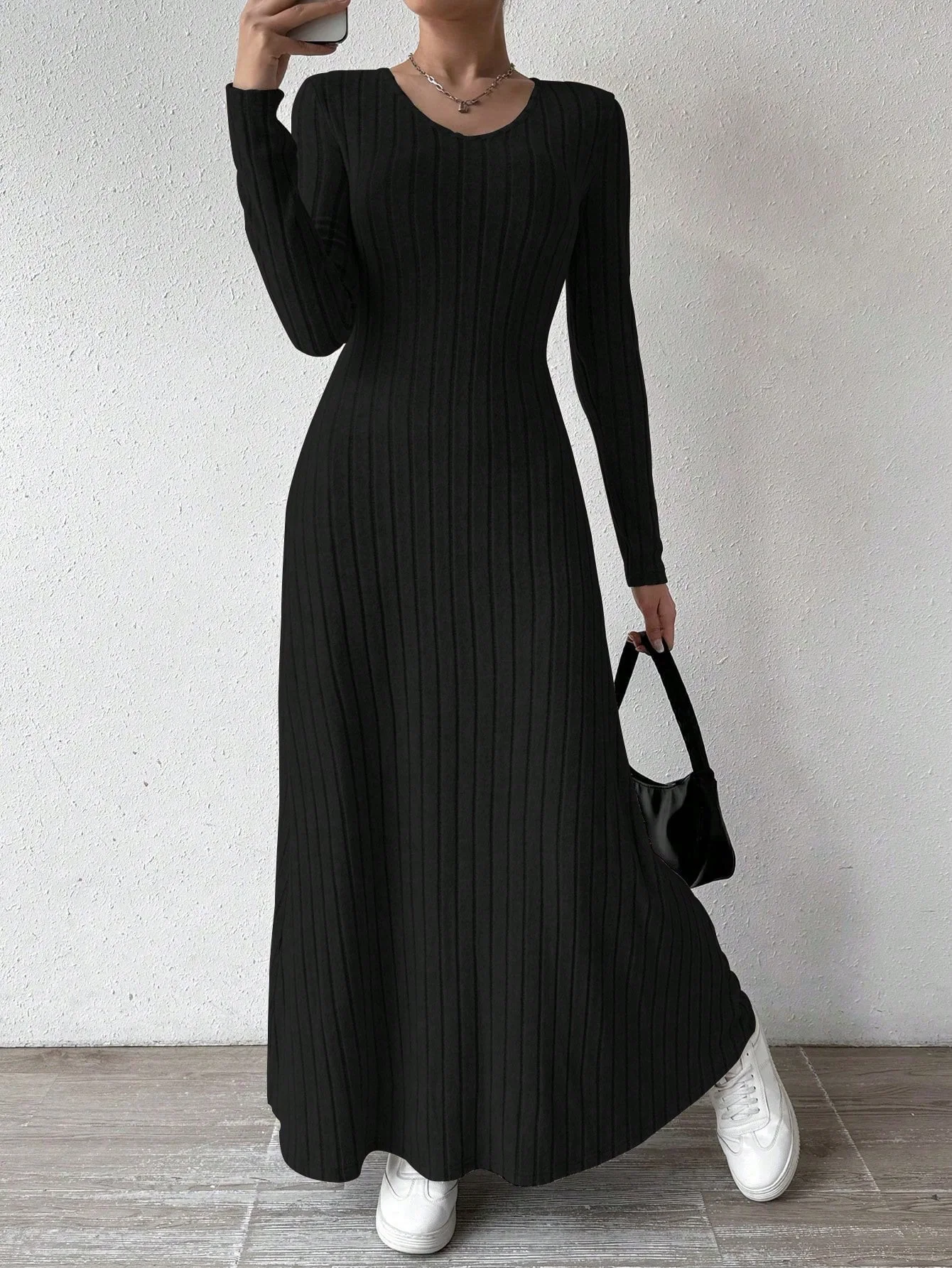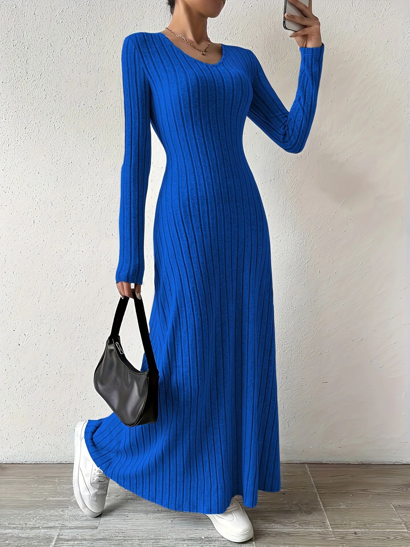 Womens Dresses Female Clothes New Long Sleeve V-neck Knitted Long Dress For Women Elegant Party Long Dresses Gothic Clothes 2025